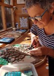 Following a large response at the BEAT Ealing Art Trail last year, I have been giving a lot of Beginners’ Mosaic Lessons – since then I have delivered to 24 people! I like to work with small groups of 3/4 so they get a lot of 1-2-1 attention. Everyone has taken away a lovely first mosaic, all totally different. I now offer a Follow Up Session for people that would like to make another piece but either don’t have the space at home or don’t want to make a big financial outlay for materials and tiles. If you know anyone who may like a Beginners’ Mosaic Lesson please CONTACT ME and I can send you an Information Sheet.