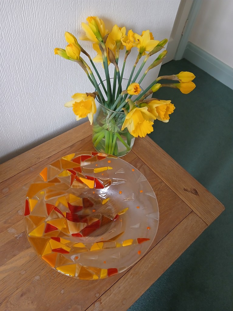 Mosaics and fused glass are both durable and resilient. My pieces can be large or small, decorative or practical, for inside or out.