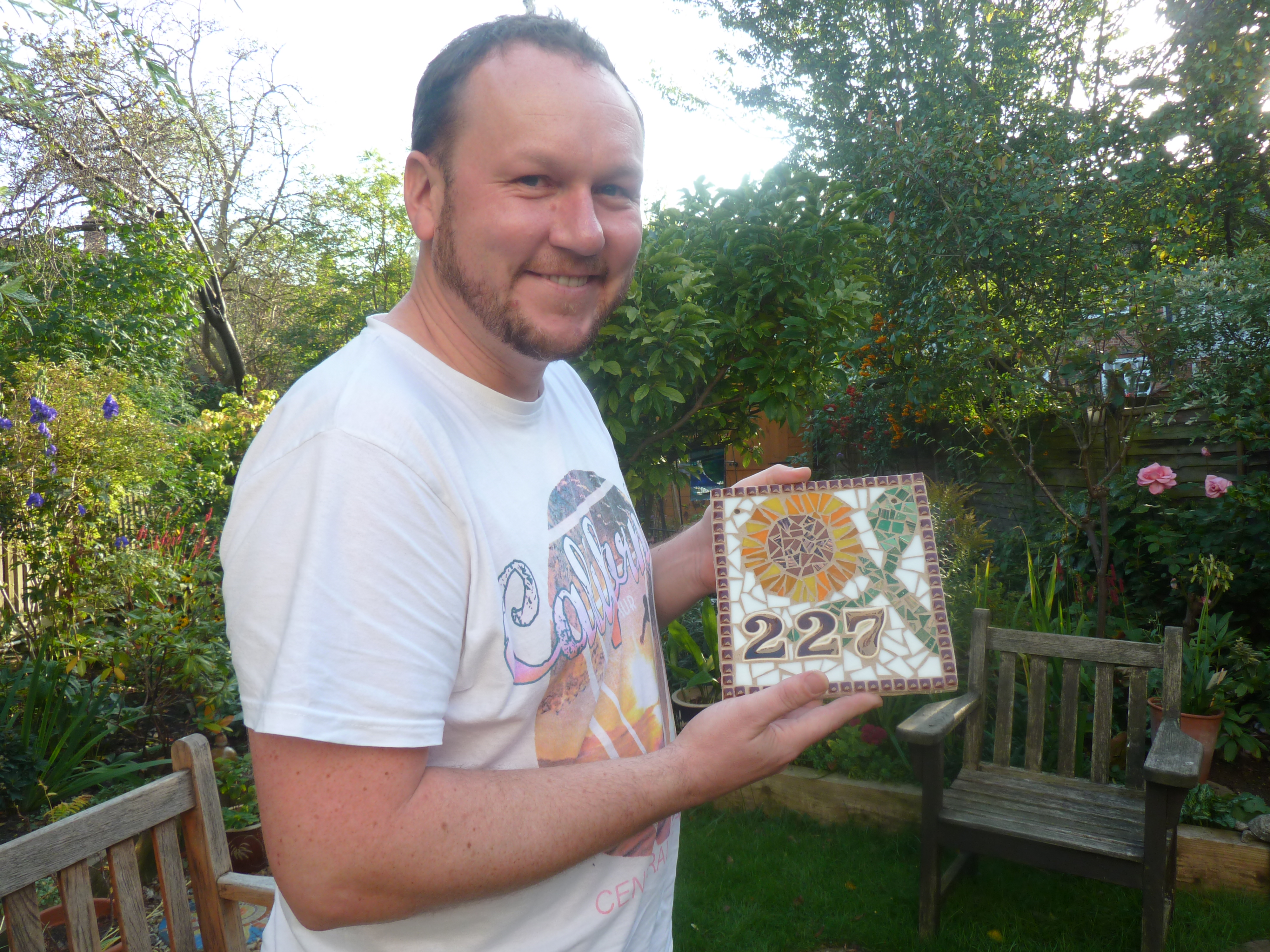 I run mosaic classes by request on small group basis. My one day ‘Beginner’s Mosaic Lesson’ is perfect for anyone who would like a taster, try something a bit different or discover their artistic flair.
